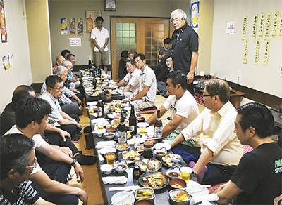 が任意で所属している「中原みこし連」(立原和行会長)が7月18日、向河原駅近くの飲食店・昭月で定期総会を行った。