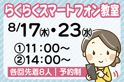 「他社からドコモのスマホに変えたい」「折りたたみ携帯(ガラケー)から、スマホにしてみたい」とお考えの方向けに、らくらくスマートフォン3を用いたシニア向けの電話教室が8月17日(木)と23日(水)に開催される。「地域の多くの方にスマホを使いこなしてもらえるように」とスマホの魅力を分かりやすく解説する。参加者には食器用洗剤のお土産があるほか、教室後にスマホの購入をすると、頭金の5400円の値引きと、充電器(2400円相当)の特典あり。予約は下記へ。