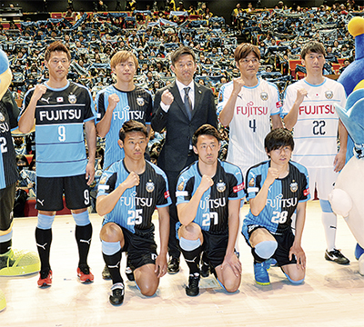今回新加入したのは、小気味の良いドリブルで攻撃の起点となる齋藤学選手、J1で前人未到の200ゴールをめざす大久保嘉人選手ら7人。選手が登場すると会場からは大きな拍手が送られた。