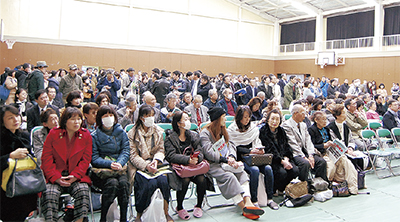 近所に住んでいるという1期生の藤澤宏さん、川畑アイ子さん、松原佳江さんは一緒に来場し受付をすると、松原さんは「1期生としてこの故郷に来られるのは幸せ」と話し、親子3代で同校に通っているという川畑さんは「各年代の人が集まるのが楽しみですね」と笑顔で話した。藤澤さんは「2カ月おきに同窓会をしている仲間が10人以上いる」と元気に答え、大同窓会を楽しんでいた。