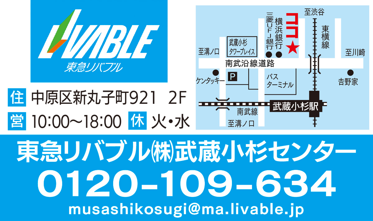 東急・JR武蔵小杉駅から徒歩1分の東急リバブル武蔵小杉センターは、地元を熟知するプロが集結。営業スタッフは全員宅建の資格を持ち、「お客様目線」を第一に明るく真面目に対応してくれる。伊藤祐次センター長は「ご購入やご売却、相続案件、収益不動産の相談などお気軽にお問合せ下さい」と話している。