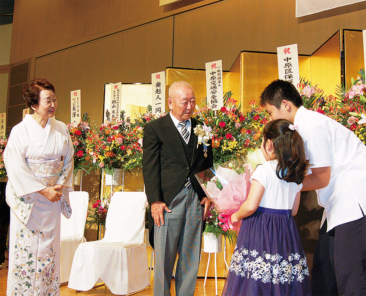 祝う会には発起人代表の冨岡茂太郎中原区保護司会会長や来賓の福田紀彦市長ら約200人が出席。朝山さんが地域活動として取り組んできた、保護司会、中原交通安全協会、川崎中ロータリークラブなどから多くの関係者が来場し、朝山さんの受章を祝った。福田市長は「安心で安全な街づくりには更生保護活動の取り組みは重要。朝山さんの22年間の功績は素晴らしく街の誇り」と称えた。