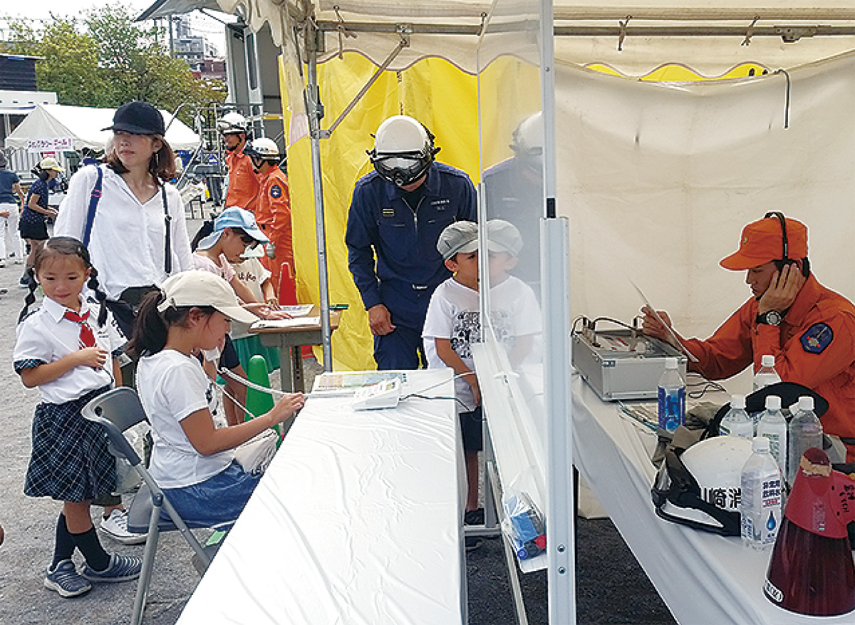 中原区総合防災訓練が9月23日、住吉小学校で行われた。中原区役所や消防署、消防団、区自主防災組織連絡協議会などが協力して実施され、当日は区民など約800人が参加した。