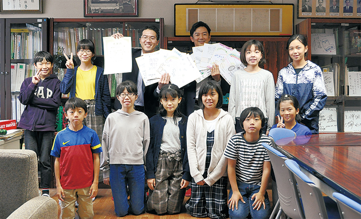 中臣校長からの感謝状のほか、同校運営委員会に所属する児童10人からも手書きのメッセージが記された色紙が同社社員に手渡された。感謝の思いを受け取った同社担当の木村健太さんは、「これまでも花植えや清掃などをしてきたが、防犯カメラ設置は初の試みだった。グループ会社のノウハウを生かしながら完了できたが、今日は実際に喜んでくれる子どもたちの声が聞けて嬉しい」と感想を述べた。
