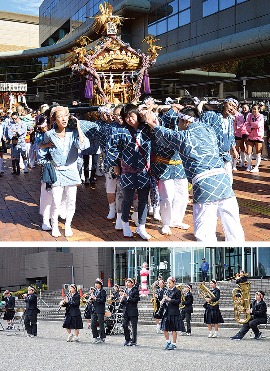 開会式が行われるステージやお祭り広場では各団体が日ごろの成果をステージで披露し、にぎやかに祭りを盛り上げる。とどろきアリーナでは巨大オセロゲームが楽しめるこどもフェスタや体力測定が行われ、市民ミュージアムではゴルゴ13展や映画監督・新藤兼人特集を開催中。このほか、模擬店ひろばでは、多くの展示、物販、飲食ブースが出店。墓や不動産、歯科相談などのブースも設けられる。また、みこし・はやしパレードは午前10時30分に等々力緑地から出発し、新城神社へ向かう。
