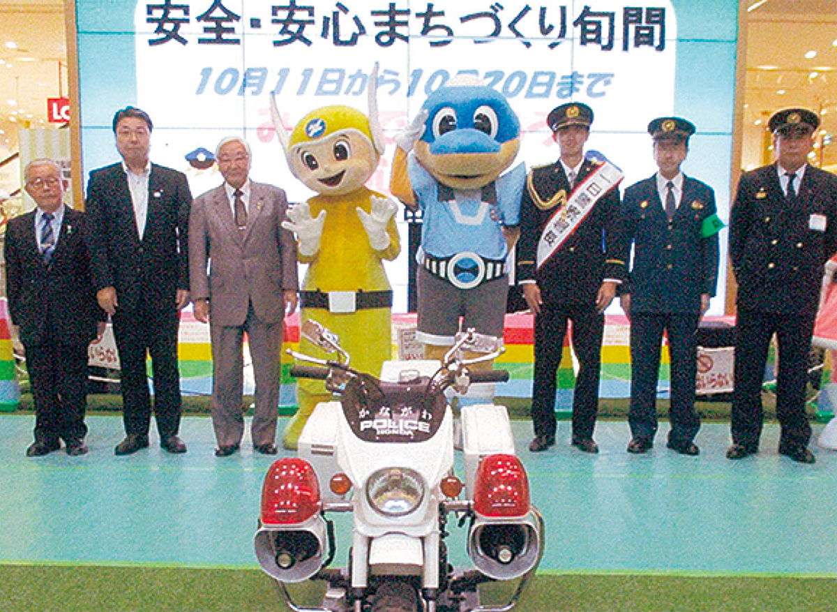 サッカーJ1・川崎フロンターレの谷口彰悟選手が10月11日、中原警察署の一日署長に就任し、グランツリー武蔵小杉で買い物客らに振り込め詐欺防止を呼びかけた。