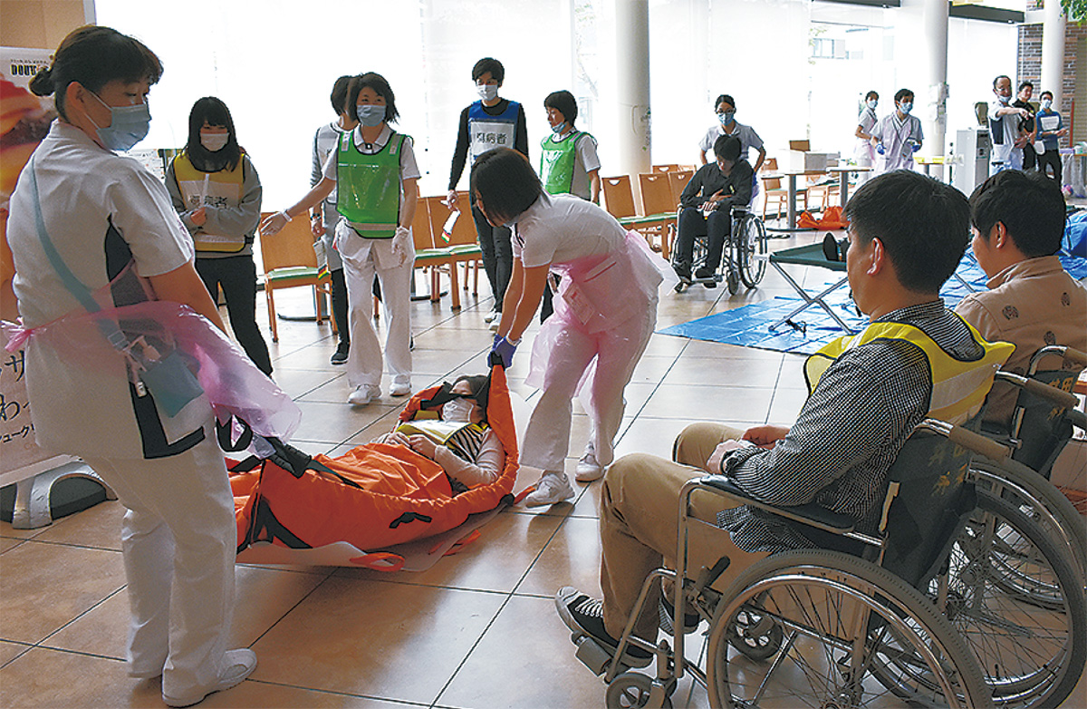 井田病院で10月27日、総勢100人以上が参加する大規模な災害医療訓練が行われた。事前に訓練のシナリオを参加者に知らせない「ブラインド型訓練」に、同院職員だけでなく、連携する近隣病院、中原消防署救急隊、市病院局職員などが一丸となって取り組んだ。