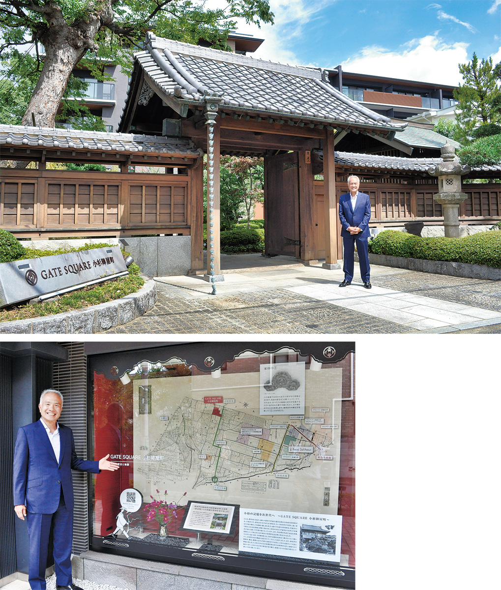 その表門の奥には、洗練されたデザインマンションが佇み、時代が調和した景観を生み出している。「歴史を継承した街づくりを」――。そんな理念で地域を活性化させようと取り組んでいるのが原家12代目で、(株)原マネージメント代表の原正人さん(62)。その試みの一つが、マンションの外壁に設けたギャラリーだ。地域住民らに中原街道や多摩川の歴史などを学んでもらおうと一般開放。さらに今年発見したという1931年(昭和6年)当時の小杉の古地図を展示し、現在との位置関係などを伝えている。原さんは「かつて小杉の中心は小杉十字路交差点付近で、ロンドン・パリと称されていた。今の武蔵小杉駅周辺は田畑が広がっていて、駅はなかった。そんな歴史を知らない方も多いのでは」と話す。