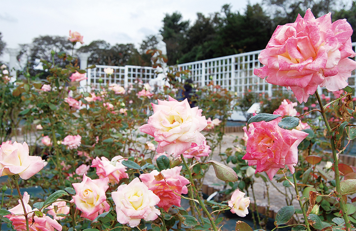 毎年春と秋に一般公開を行っている同苑。台風19号の接近前には開花したバラの摘み取りを行い、ほとんど影響なく開花を迎えているという。ばら苑ボランティア会の前山英二会長は「秋は気温が低いため花持ちが良い。長く楽しんでもらえるはず」と話す。