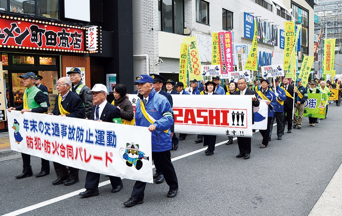 中原区交通安全母の会のメンバーらが啓発物を配布後、全員が武蔵小杉駅周辺をパレードし、交通安全を呼びかけた。同協議会の原富雄会長は「12月は事故や振り込め詐欺、火災が増える時季。皆さんと協力して啓発することで安全安心な街づくりにつながる」と話した。