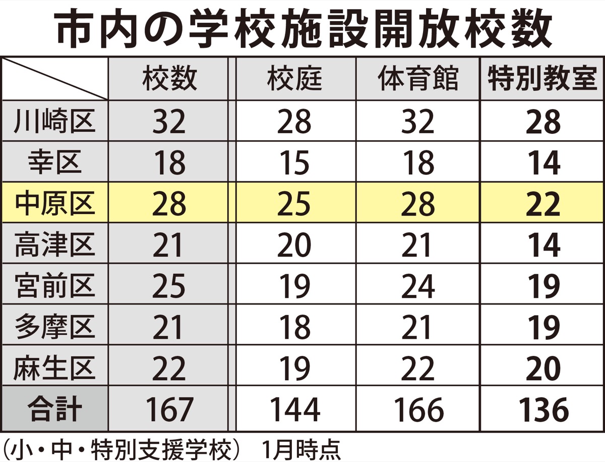 特別教室は一般教室と廊下でつながっている場合も多く、校舎内に関係者以外が出入りしやすくなれば、児童生徒の個人情報保護や安全確保が懸念される。市立小校長の一人は「校庭や体育館はある程度独立性があるが、子どもの学び舎である校舎内を幅広く使ってもらうのはハードルが高い」、石井さんは「親の立場として子どもの安全を守る仕組みづくりが不可欠」と指摘する。