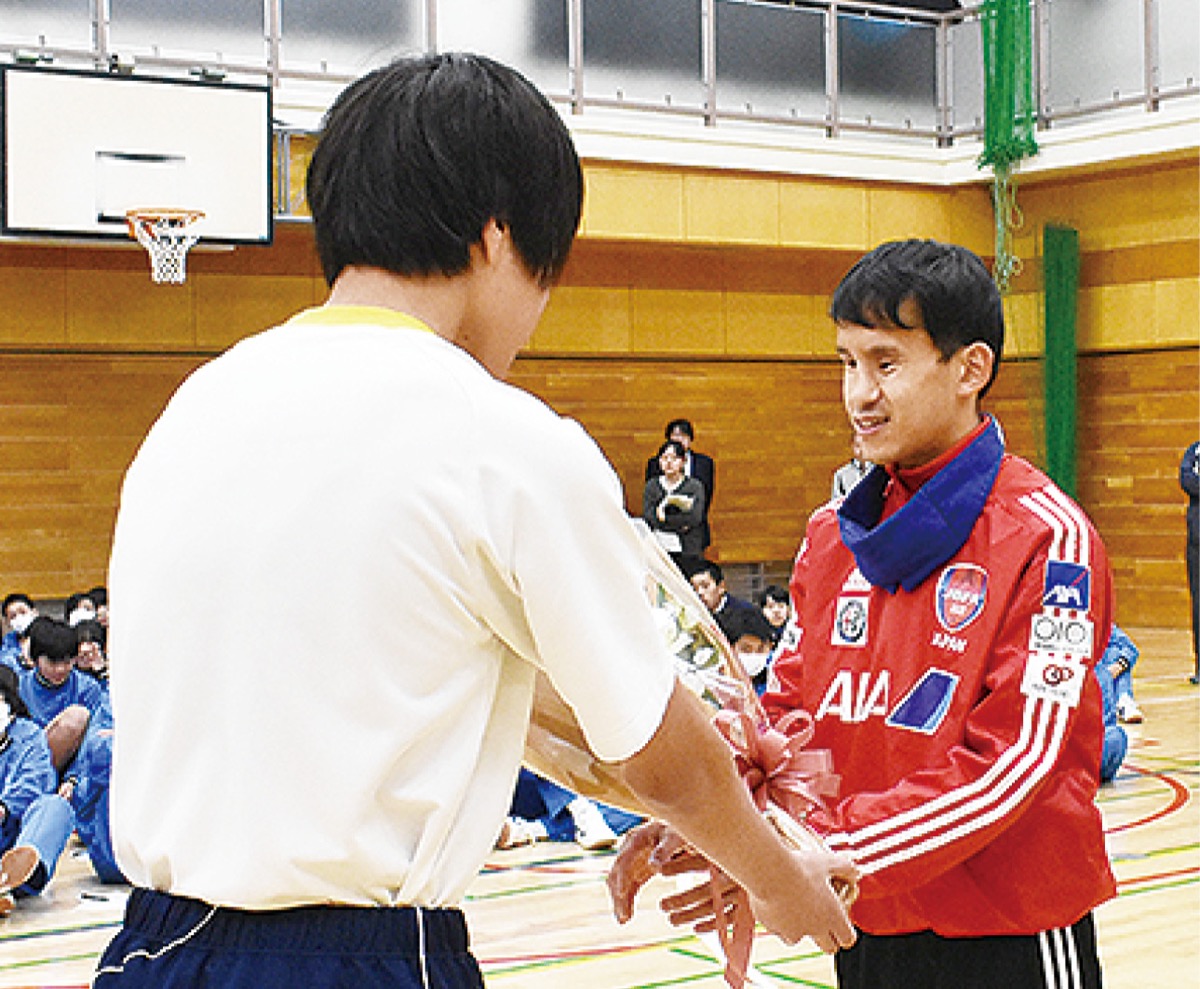 丹羽選手は「生徒たちが明るく取り組んでくれて嬉しい。ブラインドサッカーは、見ながら指示を出す人やプレイヤーとしてボールを運ぶ人など、それぞれ役割がある。見える見えないに関係なく声を掛け合い、同じチームの仲間として勝利を目指すのが魅力の一つ」と話していた。