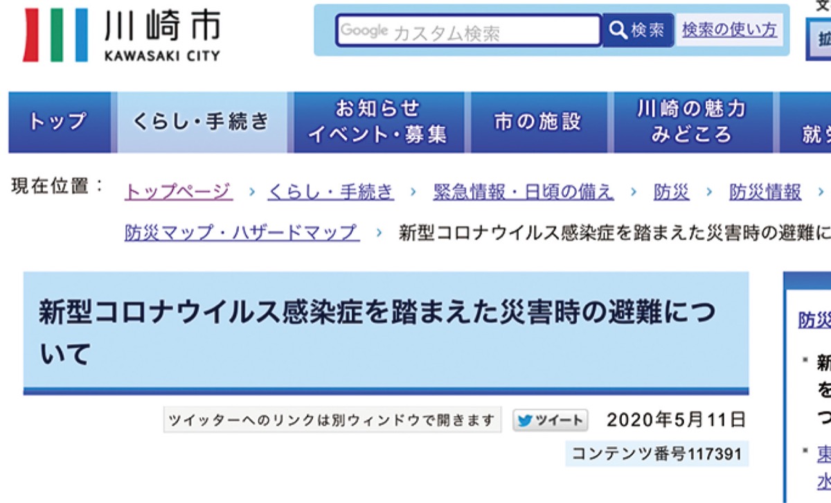 国から4月、避難所での新型コロナウイルス感染症対策を進める方針が示されたことを受け、川崎市は運営の見直しを迫られている。昨年の台風19号を踏まえた風水害対策に加え、避難所の運営について6月中に取りまとめたい考えだ。