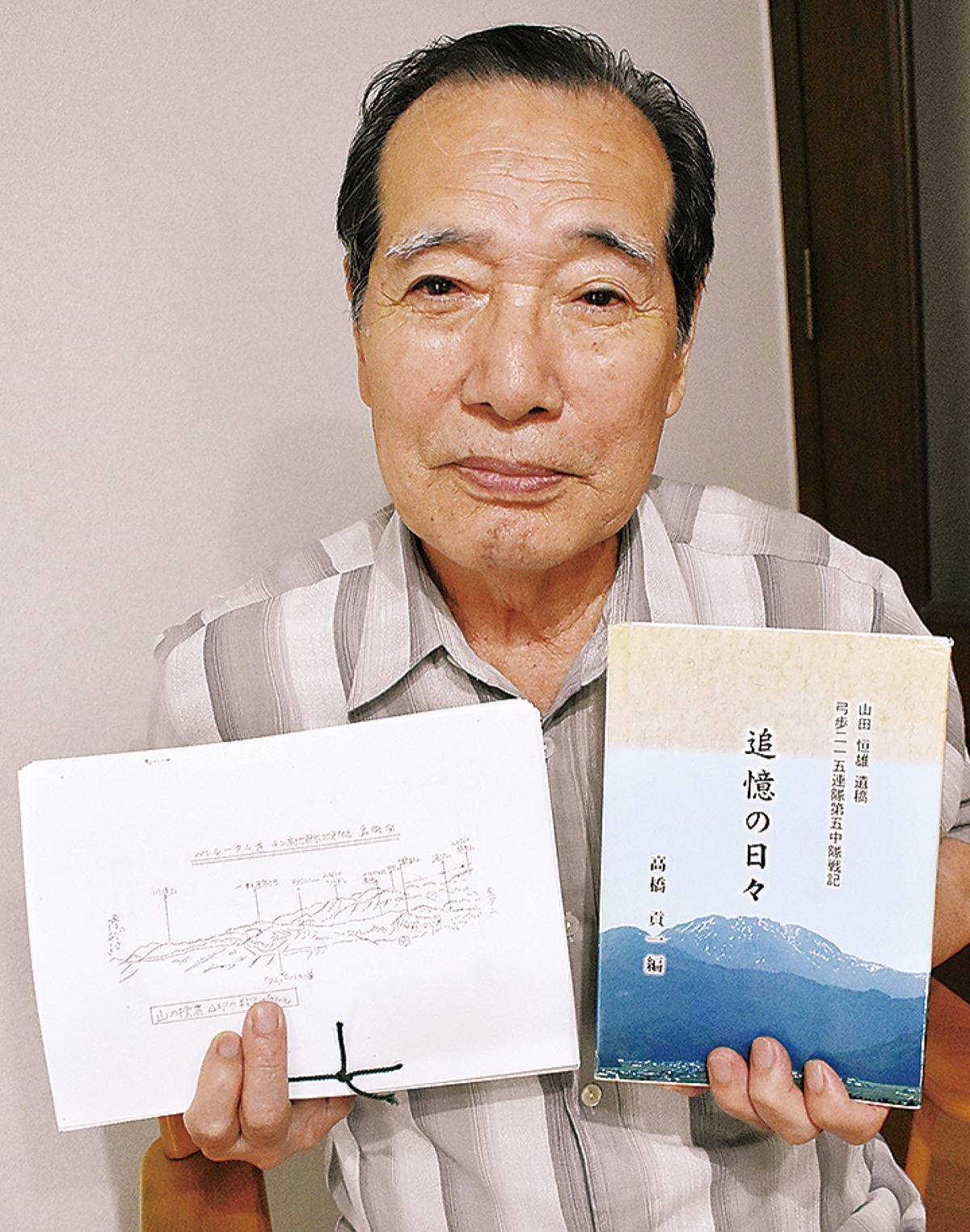第二次世界大戦中の1944年、旧日本軍の「インパール作戦」から生還した山田恒雄さん(享年72)直筆の手記を保管していた義弟の田中正芳さん(83)=北谷町在住。終戦日を前に、田中さんは義兄の思いを本紙に語った。