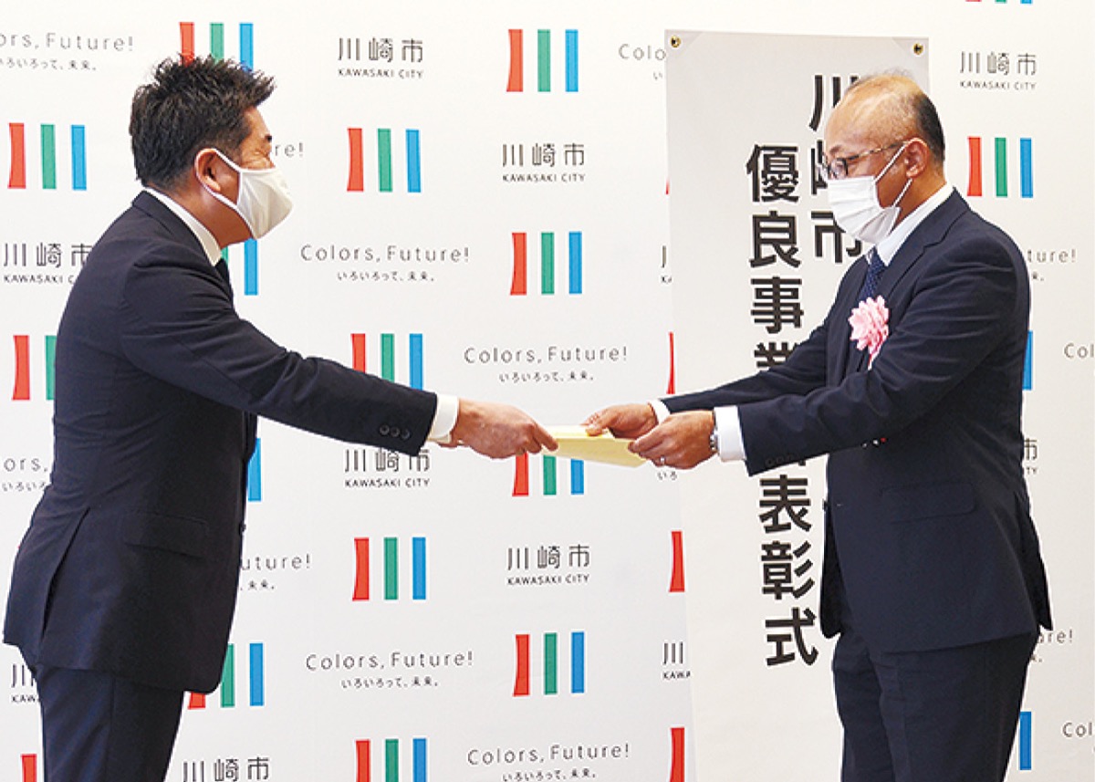 川崎市優良事業者表彰は建設業などの発展や育成を目的とした制度。同時に、次世代に技術や知識を継承することも目的に、若手技術者・女性技術者表彰も行われた。福田紀彦市長は「今年は感染症対策や猛暑などもあり、大変だったと思う。今後も高い技術力で市の事業に貢献してもらえれば幸い」と感謝した。受賞者は以下のとおり(順不同、敬称略)。