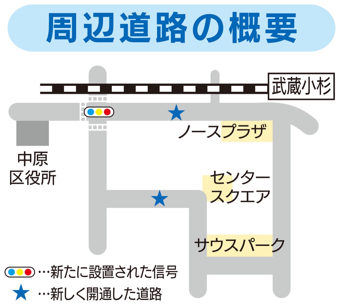 本日6日、小杉町3丁目東地区の南武線南口から中原区役所を結ぶ道路が開通いたします。街びらき週間として「Smiling7Weeks」と称しテープカットが予定され、レストランがオープン、川崎フロンターレや川崎ブレイブサンダースなどと連携した様々なイベントがクリスマスまで毎週開催されます。新道路の開通に伴い、区役所近くの南武線ガード下には信号が設置され回遊性の向上が期待される一方で、綱島街道と府中街道を繋ぐ道路のため混雑度合を注視してまいります。