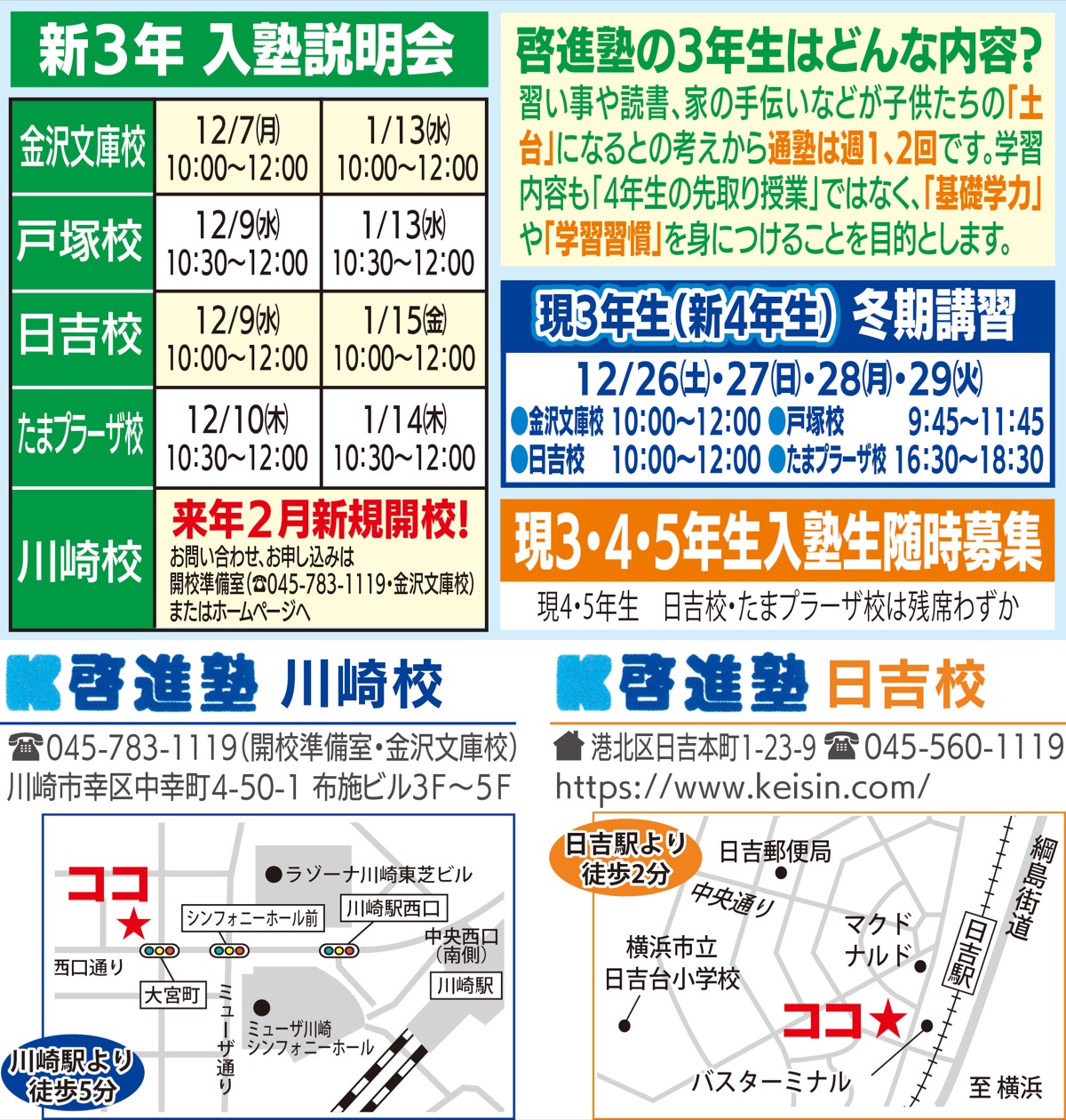 私立中学受験専門塾『啓進塾・川崎校』が来年2月、JR川崎駅西口徒歩5分の好立地に新規開校。現在、全学年テストなしで入塾できる(2月の開校まで)。