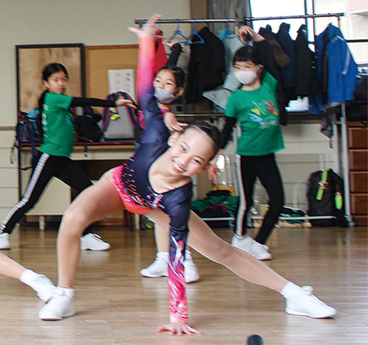 生き生きとした表情でダイナミックに体を動かすのは、大谷戸小6年の川田結生奈さん(11)。音楽に合わせて踊る競技「エアロビック」を生後1カ月で始め、昨年秋の全国大会で満点をたたき出した。指導者の母のもと練習に励みながら、世界の舞台で活躍する日を夢見て前進する。