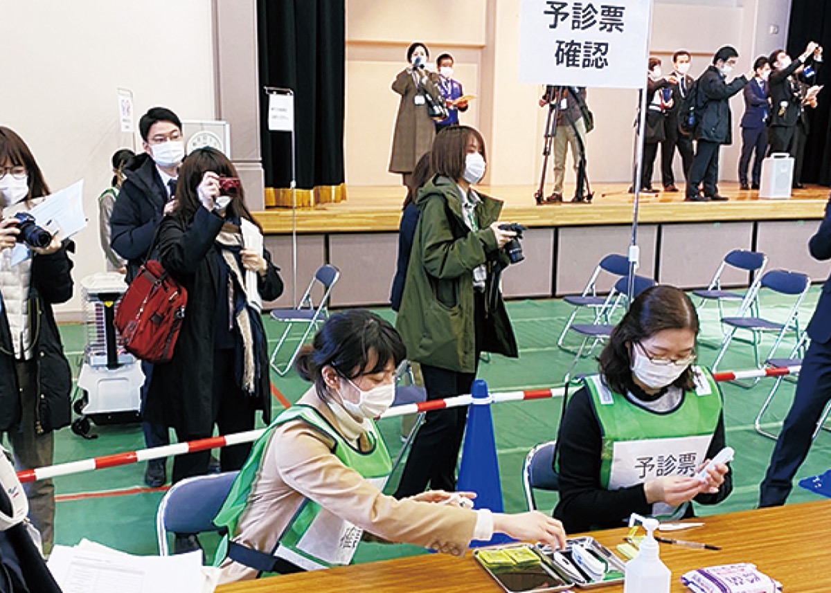 現在国においては新型コロナワクチンの確保と流通を、市・県においては接種体制作りに向けた連携を図っております。そんな中、川崎市では先月22日、医療従事者を対象に、搬入・保管方法の確認・動線の確保などの訓練を行い、同月27日には厚労省とファイザー社が共催で全国初となる接種会場の運営訓練を行いました。厚労副大臣・内閣府副大臣が見え、多数のマスメディアも訪れる中、実際に被接種者役を通して、受付から経過観察まで一連の流れを確認できたことは、課題が多く出たものの大変有意義な試みでした。健康福祉委員会でも見学して課題を見つけることも訓練の一つでした。概ね想定どおり、1時間当たり約30人接種できましたが、受付から予診待機、接種待機、経過観察の流れの中で、密を感じる部分や予診に時間がかかるなどの事例も見られました。