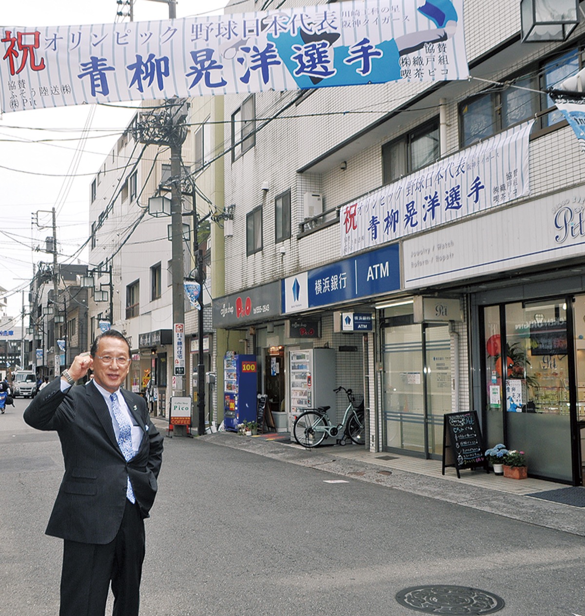 企画したのは地元でジュエリー店「Pit」を営む三浦尚敏さん(63)。横断幕は阪神ファンのSNSなどで話題となり、それを知った青柳選手から三浦さんに直接電話で感謝の言葉が届けられたという。「日の丸背負い頑張れと伝えました」と頬を緩める。