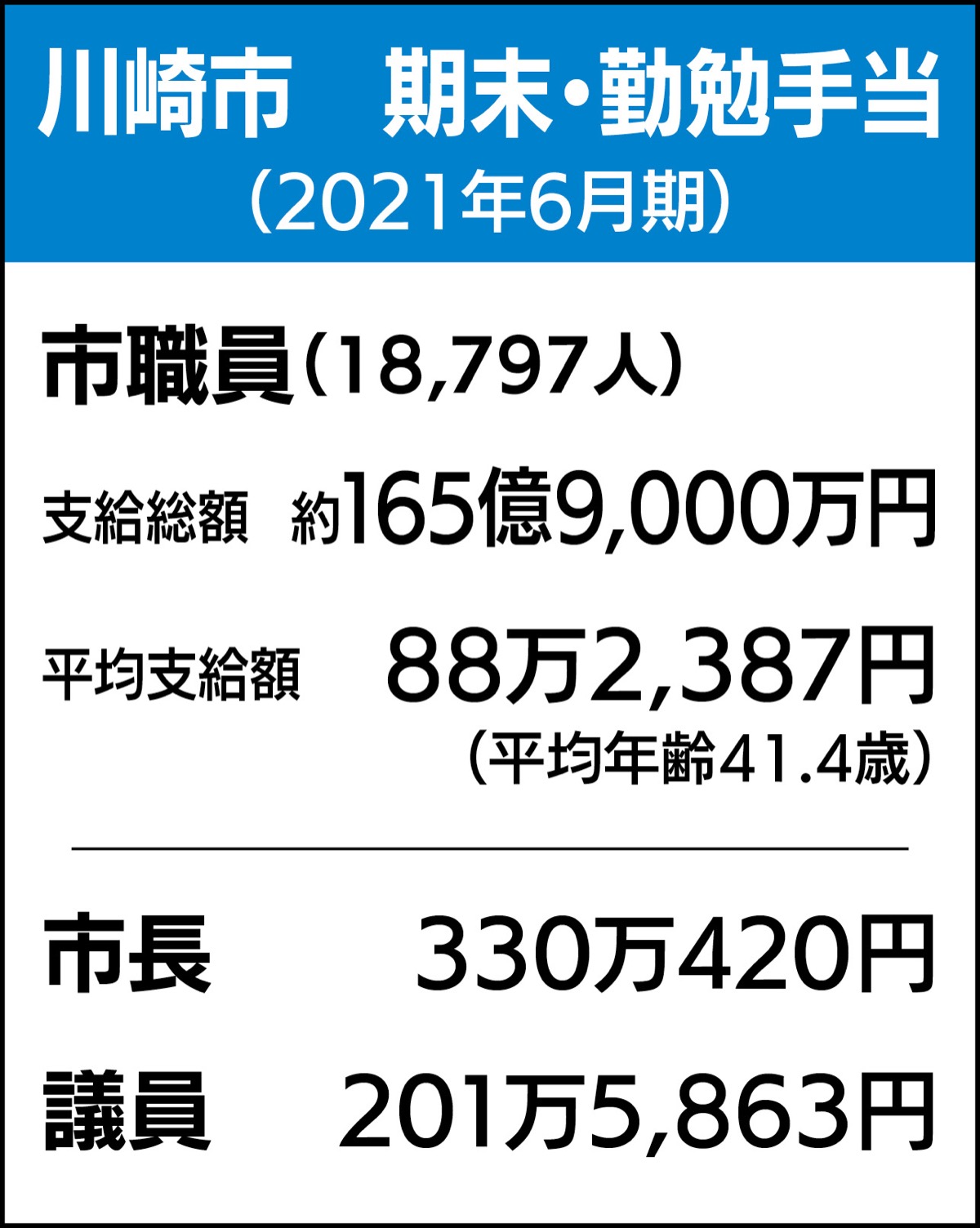 川崎市は市職員の夏の期末・勤勉手当(賞与)を6月30日に支給した。