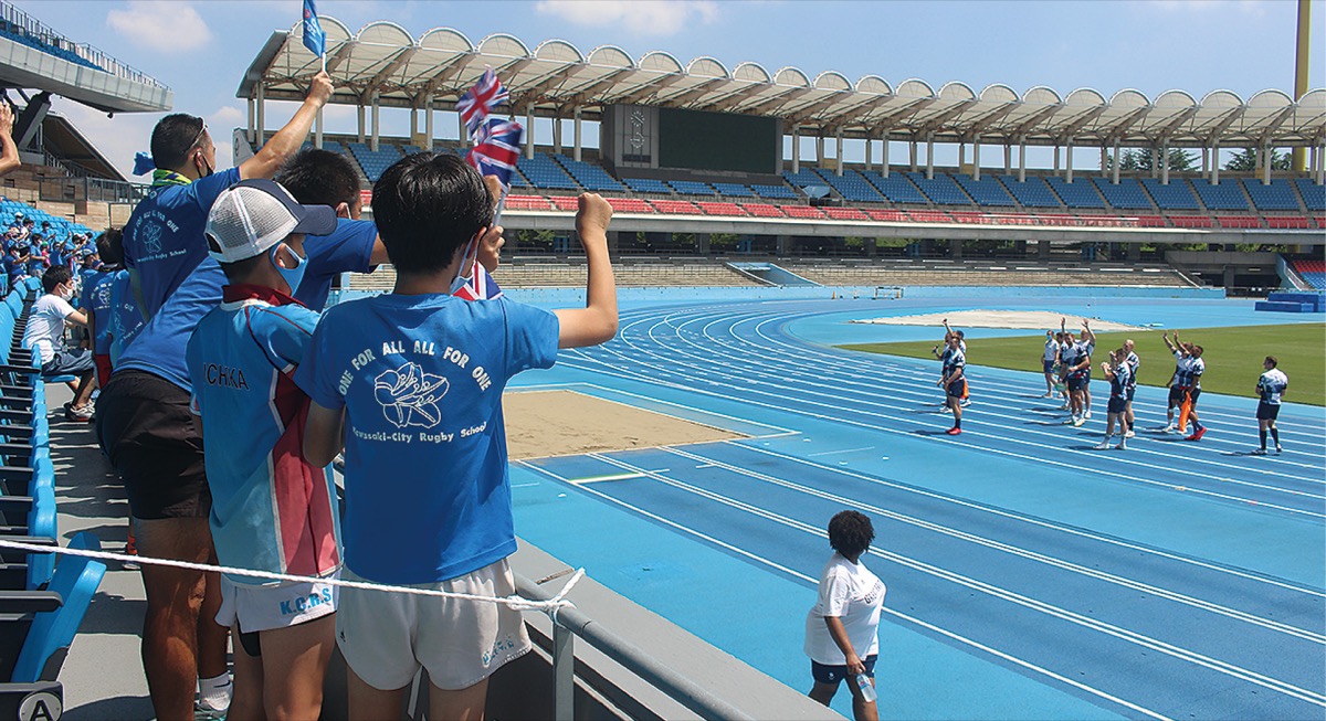 東京オリンピックに向け、ラグビー男子の英国代表は7月17日、事前キャンプ会場の等々力陸上競技場で公開練習を行った。中原区を拠点とする川崎市ラグビースクールなどの小中学生ら約150人が見学に駆け付け、選手らと手を振り合うなど交流する場面が見られた。