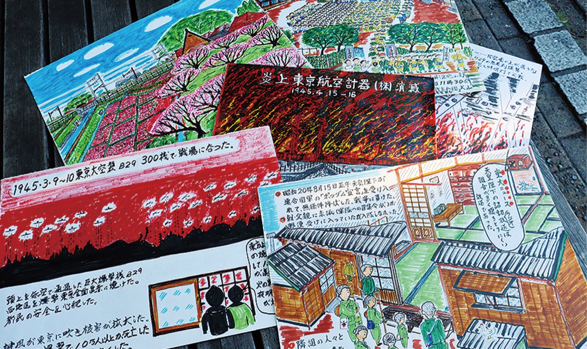 戦後は高度経済成長の中でがむしゃらに働いた中野さん。戦争に思いを巡らせたのは定年後、町内会の役員だった頃。小学校から平和教育の依頼があり、平和館で資料を読みあさった。「日本が嘘ばかりの戦局を伝えていたと分かってね」。絵は児童にもわかるようにと描き始めた。中野さんは「最近は平和教育が薄れてきたように思う。いま一度学び、平和のありがたさを知ってほしい」と静かに語った。