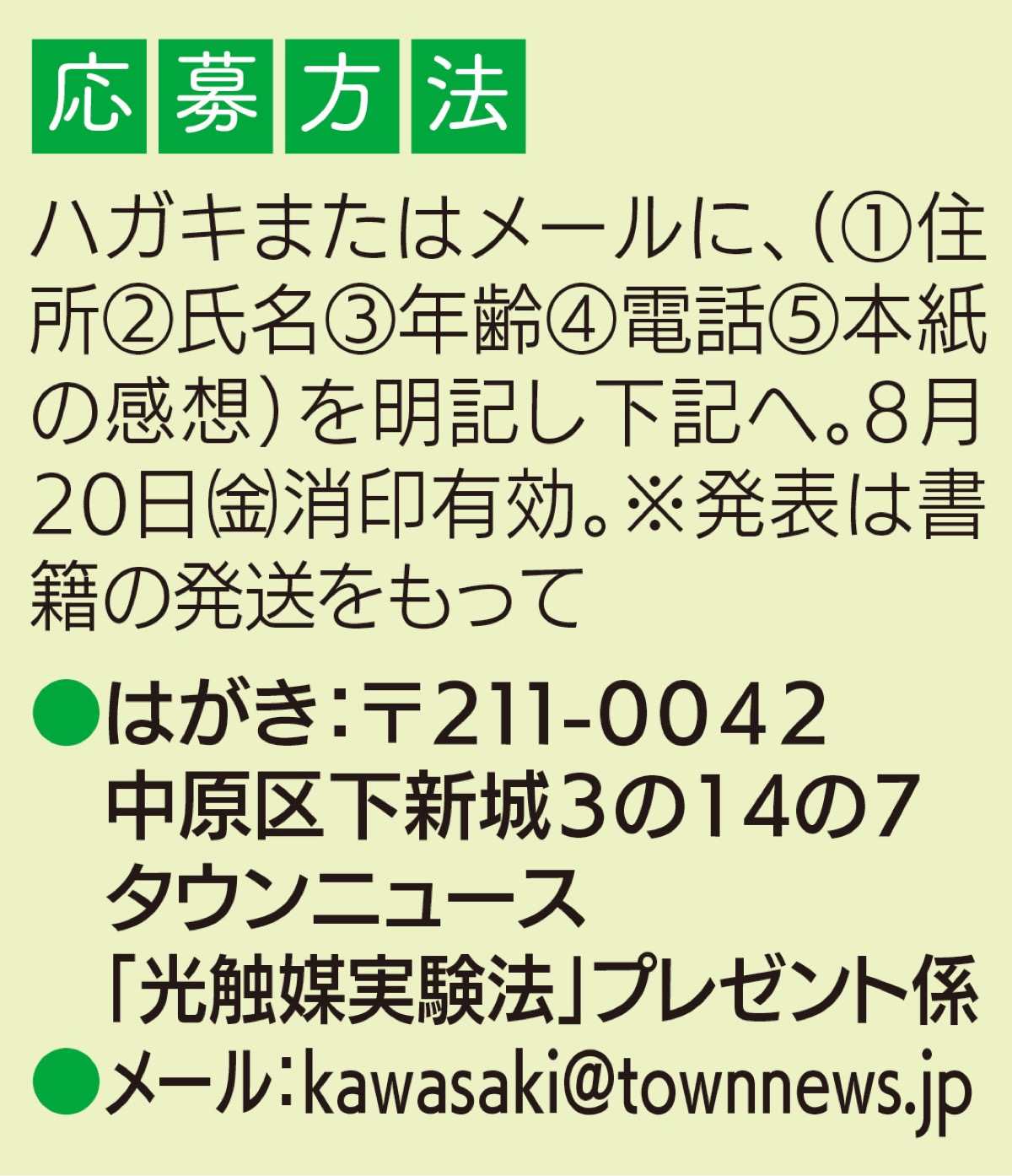 抗菌や抗ウイルス効果があるとしてコロナ禍で注目を集める「光触媒」。半世紀以上前に光触媒反応を発見した科学者で、川崎市名誉市民の藤嶋昭氏(79)=中丸子=が、教え子らとともに今年出版した著書『最新情報をやさしく解説 光触媒実験法』を弊紙読者10人に抽選でプレゼントする。全冊、藤嶋氏のサイン入り。