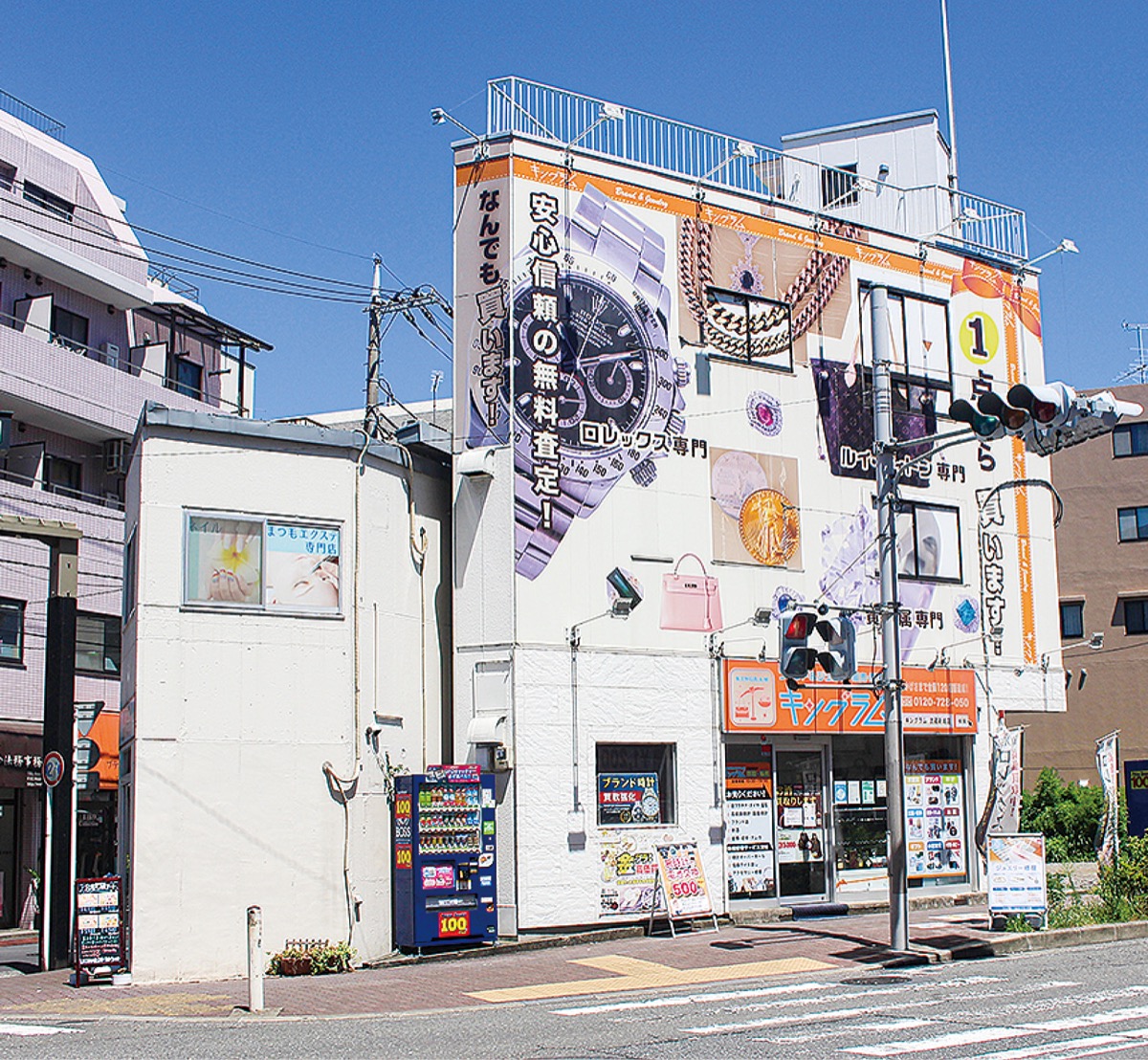 武蔵新城駅北口徒歩1分、オレンジ色の看板が目印のリサイクルショップ「キングラム武蔵新城店」では、テレホンカードの買取りを強化中だ。