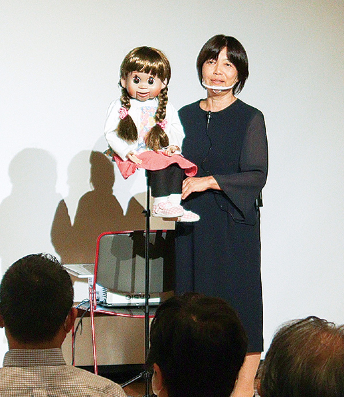 「戦争体験の伝え方はいろいろあっていい」と腹話術を用いて学校や催しで語り継いでいる柳川さん。「戦争は終わってからもずっと、人の中で暴れまわるもの。当時の人が手に入らなかった時代に私たちは生きている。私は『社会への興味』『人を思いやる優しさ』を持つことを心に誓っている。皆さんも心の中に平和のとりでを築いてほしい」と語った。