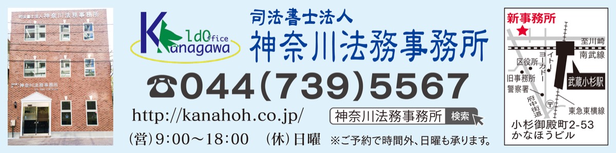 平成3年の開設以来、30年に渡って地元中原区で年間100件を超える相続手続(遺産整理業務、遺言作成手続)を受託し、執行業務に取り組む神奈川法務事務所。「相続と聞くと、国家資格者の中で税理士と考える方も多いと思いますが、税理士は税金の申告代行が主な業務のため、遺産分割協議書や遺言、各種法律文書の作成は全くの専門外で、不動産の名義変更の代行も認められておりません」と佐藤氏。さらに「昨今の超低金利で収益が悪化した金融機関等が、財務アドバイザーと名乗って相続手続きを誘致している例が見られますが、そもそも財務アドバイザーなどの国家資格者はなく、専門職種に再依頼(紹介)するだけで手数料が生じる場合がありますので要注意です。また、最近の中原区内では古いアパートを取り壊して収益性の高い物件にして相続を準備する傾向が多くありますが、この古いアパートの賃借人に対する明け渡し交渉において建設会社はもちろん、不動産業者(管理会社含む)が相手方との交渉を代行したり、弁護士・法務大臣認定司法書士以外の代行業者等が行いますと刑事罰が生じる重大な法令違反ですので絶対いけません。なお当事務所は令和2年12月、21年間開設していました中原区役所前から事務所を移転し、複数の経験豊富な法務大臣認定司法書士が所属する事務所として、皆様のお悩みごとの解決をしております。ぜひ一度、ご相談にお越しください」と話している。まずは気軽に問い合わせを。なお同事務所の新築移転先は下記地図を参照。