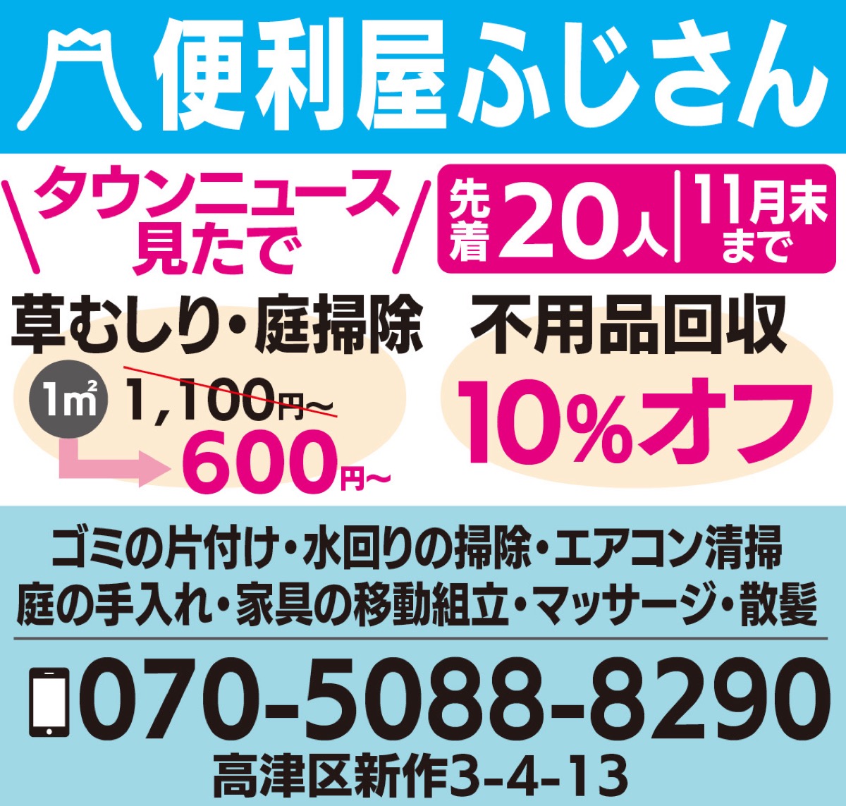 基本料金は1時間2500円〜。見積もり・相談無料。「臨機応変に対応いたします。困ったことがあったら、まずはお電話ください」と藤井さんは話している。女性スタッフも在籍。