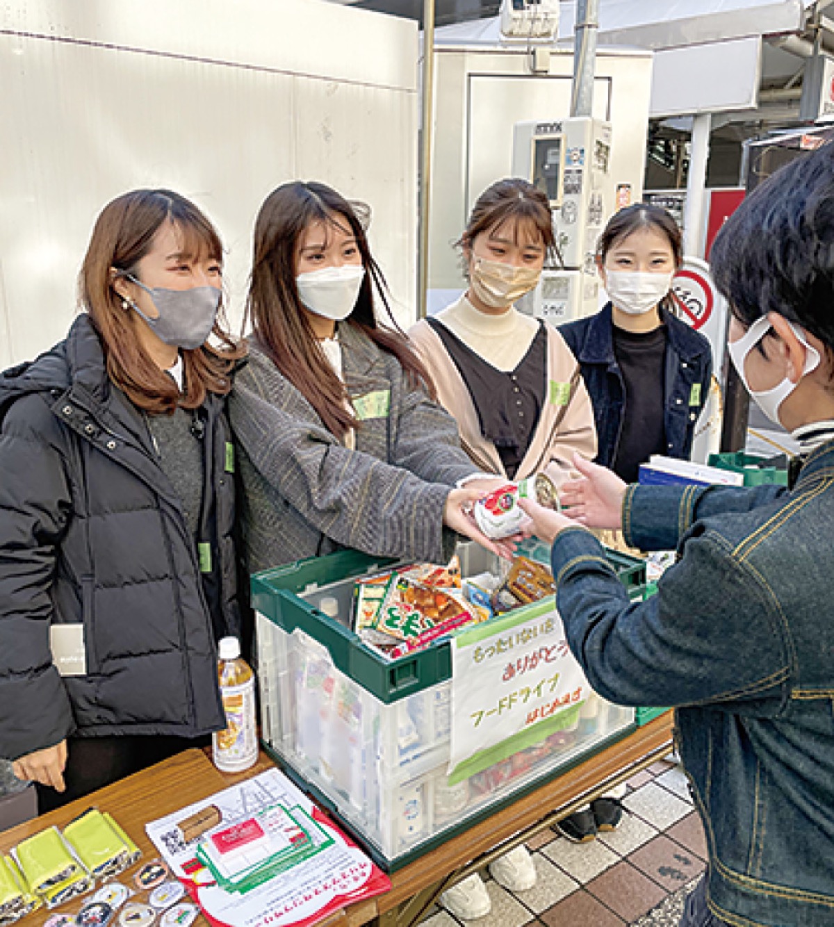 モトスミ・オズ通り商店街振興組合(岩佐保宏理事長)が11月14日、慶應義塾大学の学生らとともにフードドライブ活動を行った。