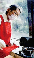 野々川さんは愛知県出身。工業の専門学校を卒業後、デジタルカメラやプロジェクターなどのプラスチック精密金型を製作する同社に入社した。作業はミクロンレベルなため顕微鏡を使いながら微細な磨きや鋭いエッジを表現。老眼が進んでからは、指先や作業中の音を聞き分ける感覚が研ぎ澄まされたという。