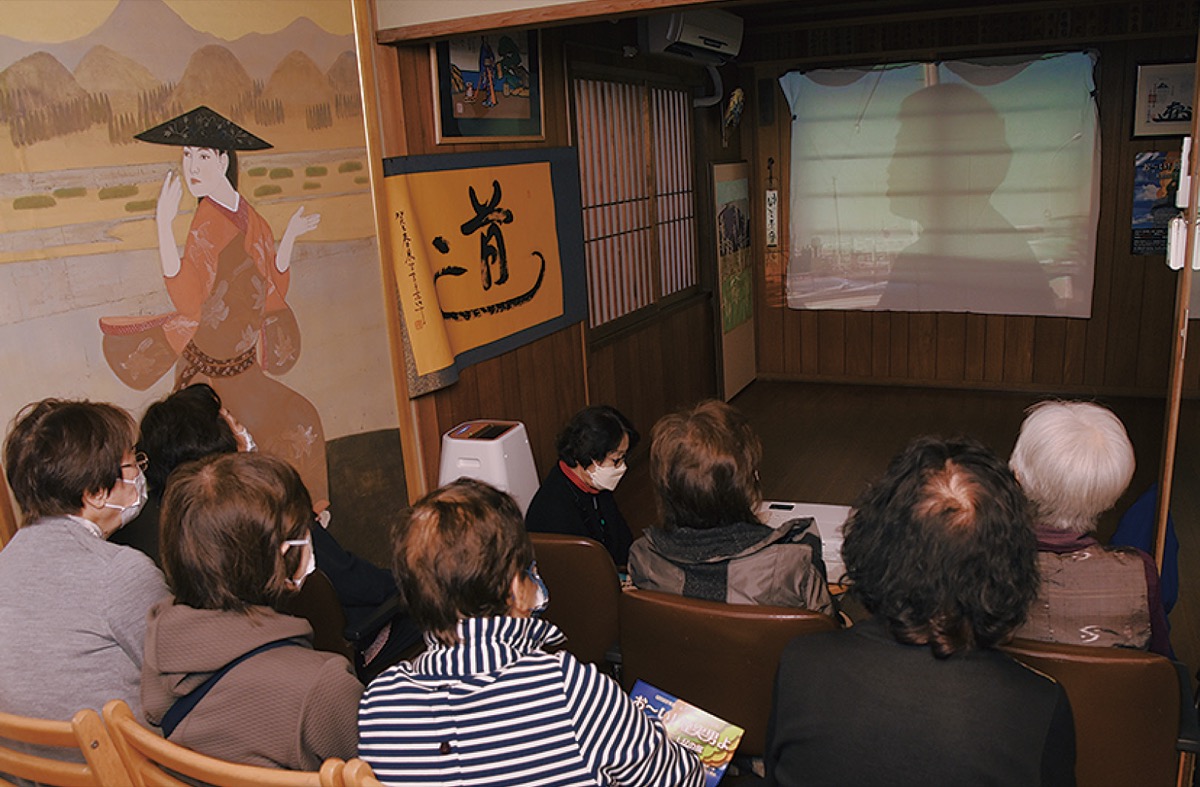 約20人が会場に集まり真剣な表情で番組を見ていた。「知らなかったので驚いた」「労働者の様子がよくわかる」といった声が聞かれた。また、市民劇の作者・和田庸子さんも参加し、煙突男を題材に舞台を作った気持ちなどを話した。