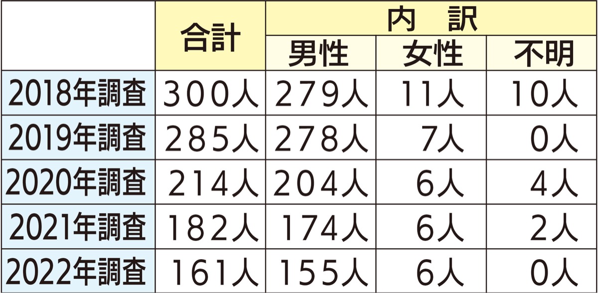 川崎市は、国の要領に基づいて行われた市内のホームレスの実態に関する調査について4月26日、結果を公表した。市内のホームレス数は161人で、昨年の182人から21人減少。2018年の300人から約半数になった。