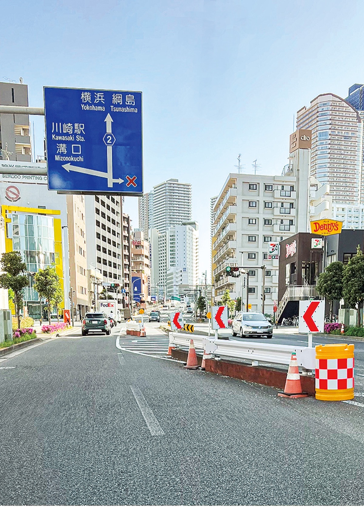 綱島街道を、丸子橋から横浜方面に車で走ると、上丸子小学校前で、片側2車線から1車線に規制され合流する箇所があります=写真。その先にある南武線をまたがる跨線橋が今年3月に2車線化されたのにも関わらず、この区間で、なぜ合流箇所だけ今も2車線にならないのか?と、違和感を覚えた人も多いのではないでしょうか。私も疑問に感じ、地元の方からもご指摘がありましたので、管轄する市建設緑政局に確認しました。