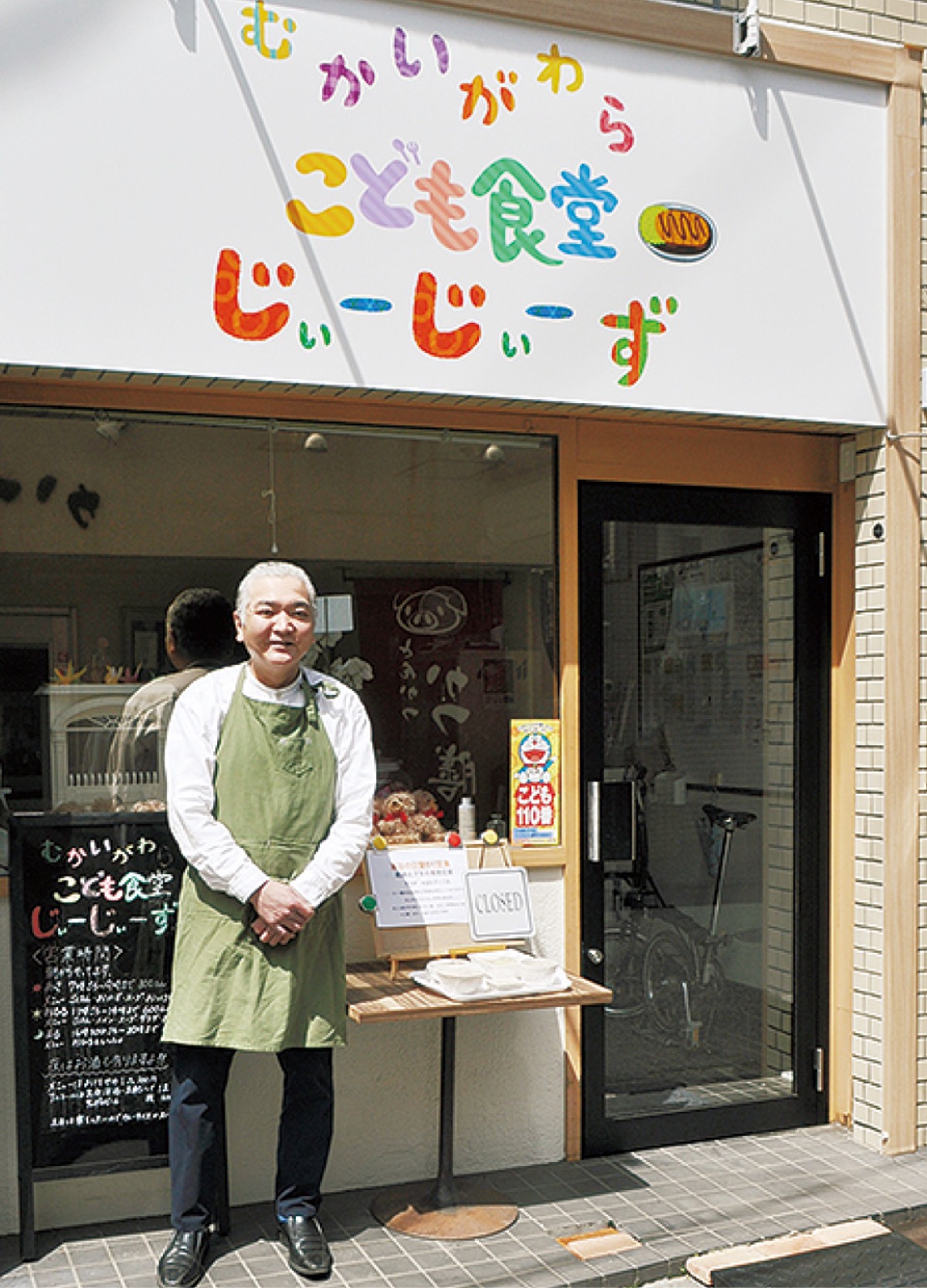 昨年11月の開店以降、朝から夜まで休まず営業を続けている「むかいがわらこども食堂じぃーじぃーず」。一人切り盛りするのは、料理人歴42年の宮田明さん=人物風土記で紹介=だ。貧困家庭の支援という本来の目的に加え、「誰でも楽しく食事できるように」がモットー。独身のサラリーマンや主婦だけの来店も受け入れている。「子ども一人でも、いつでも来られるように」と、毎日営業しているのも特徴の一つだ。