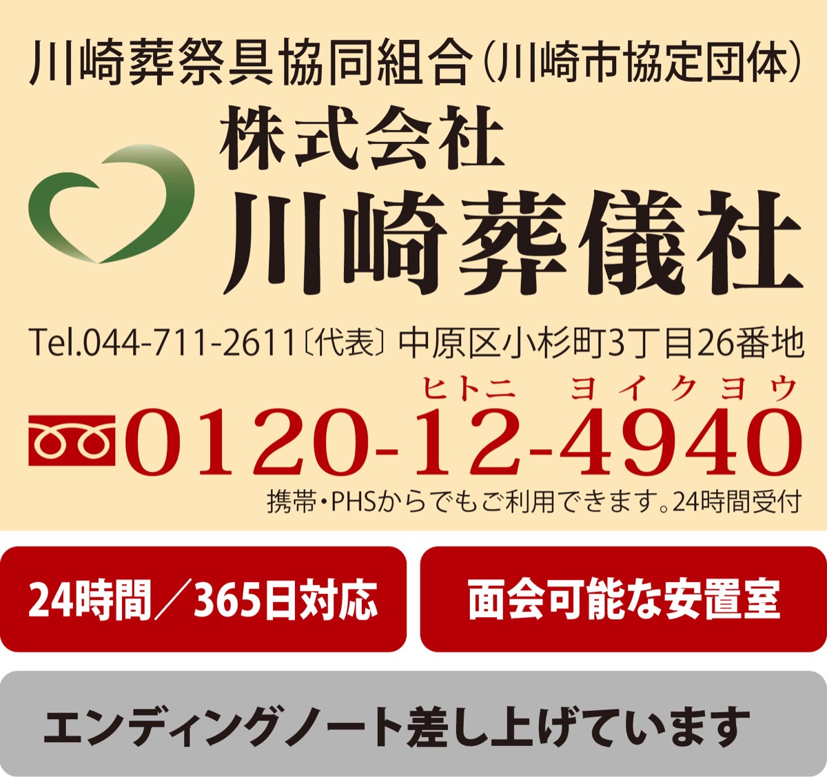 1951年創業、中原区役所前で安心・信頼・真心のサービスを届ける(株)川崎葬儀社。川崎市と連携し、市民葬儀の環境改善に取り組む「川崎葬祭具協同組合」の理事長も務める齋藤社長は、今年4月に、50年ぶりに刷新された川崎市市民葬儀制度の協議会メンバーとしても携わった。