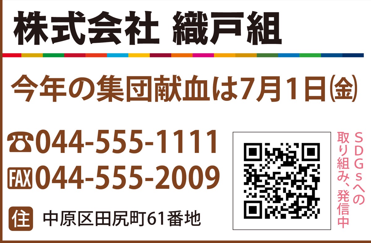 来年には創業100周年という節目を迎える(株)織戸組。中原区田尻町に本社を構え、砕石業や建設業などを手掛ける。半世紀にわたり続く献血活動は、恒例となった事業の一つだ。毎年夏に同社敷地で赤十字社や地元商店街と協力して集団献血を行い、参加者は200人を超える。