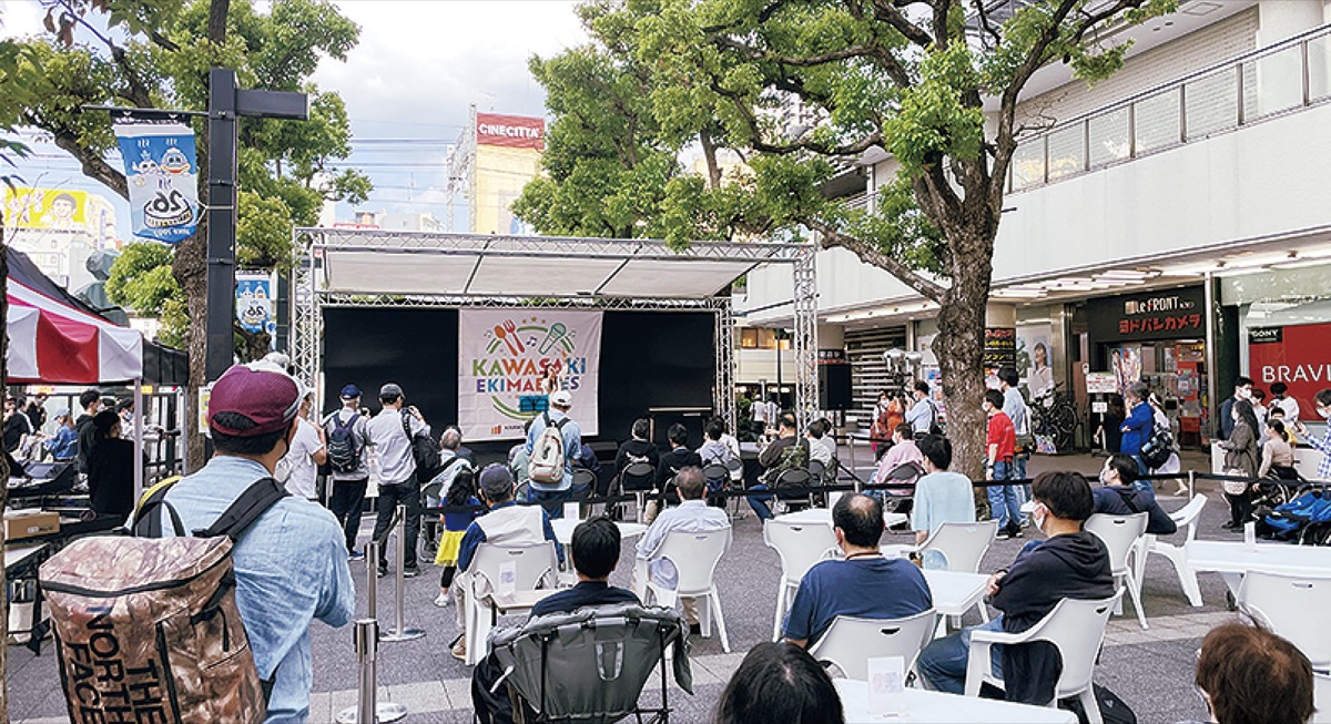 昨年末から川崎駅前で毎月開いているのが「川崎駅前フェス」。川崎駅東口駅前広場を会場に、音楽アーティスト中心のステージやキッチンカーなどで食の提供も行う。