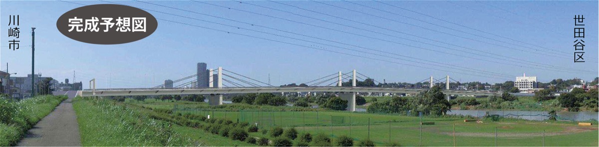 私は平成22年12月17日号の本紙タウンニュースに「多摩川横断新橋建設計画、宮内新横浜線目黒通りに接続」と題して掲載させていただきました。その寄稿文の一部には次のような内容の文章があります。「―今後は西下橋交差点から多摩川対岸の東京都市計画道路放射3号線(目黒通)が多摩川架橋で接続され、東京都心から新横浜に至る東京都・川崎市・横浜市を結ぶ幹線道路となります。橋梁の形式や構造は未定ですが100億円程度の事業費を東京都と川崎市が負担します。今後都と川崎市が協定を締結、その後、地質の調査及び基本計画を行い、平成27年度中の工事着手を進めています。完成後の管理についても今後協議がなされます―」と記し、当時は「多摩川架橋」と言われていたものが、今では仮称ではありますが「等々力大橋」と言われるようになりました。また、橋の概要についてもすでに明らかになりました。橋長は386・9m、総幅員31・65m(4車線)、事業主体は東京都・川崎市、施工主体は東京都、事業費の概算総額100億円の負担割合は本市と東京都がそれぞれ50億円となっております。