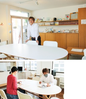 「家では誘惑に負けるし、店に長時間居座るのは気が引ける。集中して作業できる場所が近くにあったら」と福地さん。コロナ禍で中止していた期間は、オンラインや住吉会館で出張開催した。自習の合間の交流がモトフリならではの特徴の一つで、新しいアイデアやヒントが生まれる。福地さんは「参加者からのひと言がきっかけで壁に物件を貼り出したら集客につながった」と笑う。