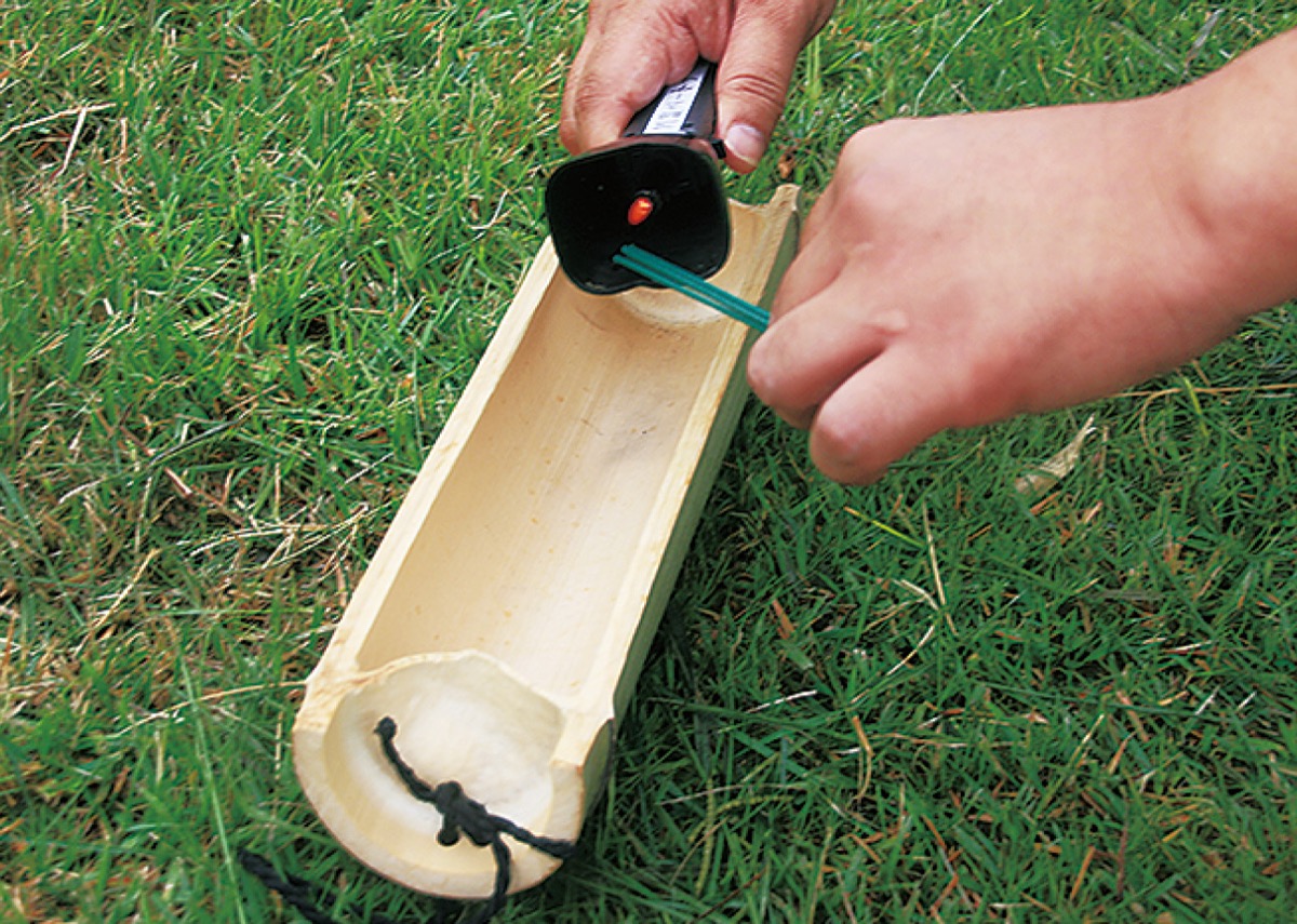 同園は昨春、マナー違反の注意喚起をする看板を約60カ所に設置。霊園事務所では、防風ライターやトレイの貸出も始めた。同時期に就任した佐田彰生所長は、園内で自生する竹に着目。地元の清風福祉会社会復帰訓練所に依頼し、竹製の線香トレイを完成させた。