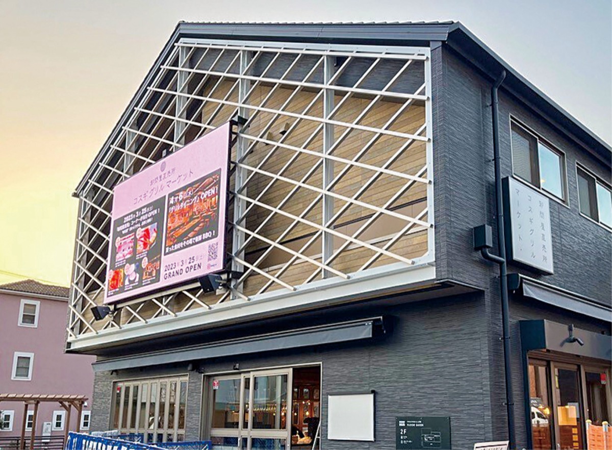 この棟の外壁面には、大型モニター=下写真=が設置され、地域情報や地元団体・企業の広告等を放送予定。