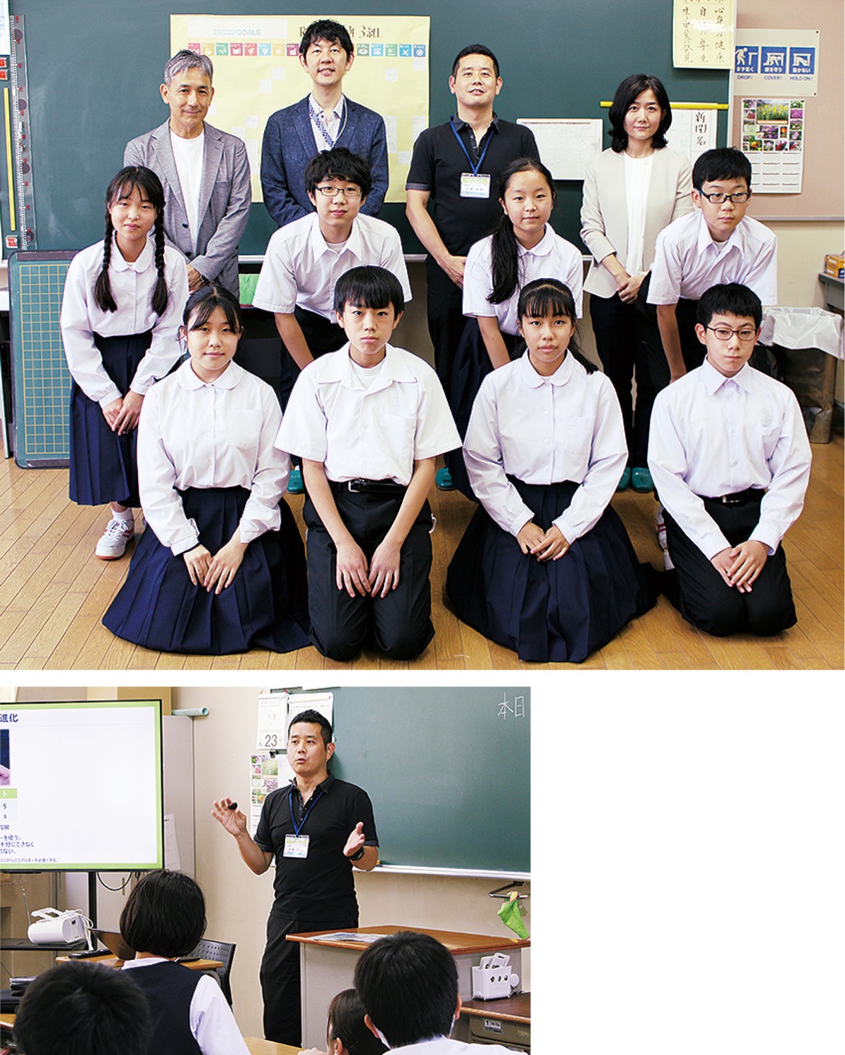 大城昌晃PTA会長(44)の発案による初めての企画で、生徒の保護者4人が人生の先輩として登壇。中学時代にやっておくべきことを話し、今後の進路や将来の職業を考えるきっかけにしてほしいと思いを込めた。エネルギープラントの設計などを手掛ける大城会長は「エネルギーの歴史と未来」、システムエンジニアの鹿野洋平さん(45)は「情報通信技術(ICT)がどのように生活に役立っているか」、心理カウンセラーの須山智子さん(42)は「しくじり先生と歩く自分探しの旅」、エンジニアとして海外でも活躍した塚本雅久さん(57)は「わくわくする将来の描き方」をテーマに授業を実施。教科書には載っていない実体験をもとにしたユニークな内容に、生徒たちは熱心に聞き入った。大城会長は「世の中にはいろいろな仕事があり、生徒たちが学校で学んでいることが将来につながることを知ってほしかった。今から未来を描き、夢をかなえてほしい」と話した。
