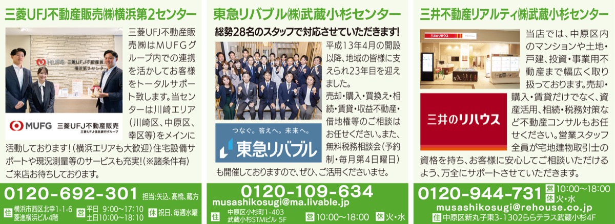 将来に備え、自宅の価値や評価は家族と共有しておきたいもの。本紙では夏の特別企画として、不動産大手の3社(東急リバブル、三井のリハウス、三菱UFJ不動産販売の各センター)と協力し不動産を無料査定。本紙が取り次ぎ3社一括で依頼することで、自宅の資産価値を比較でき、各社の視点を踏まえ今後の住まいや不動産全般の相談も可。まずは当編集室へお問合せを(左記)。