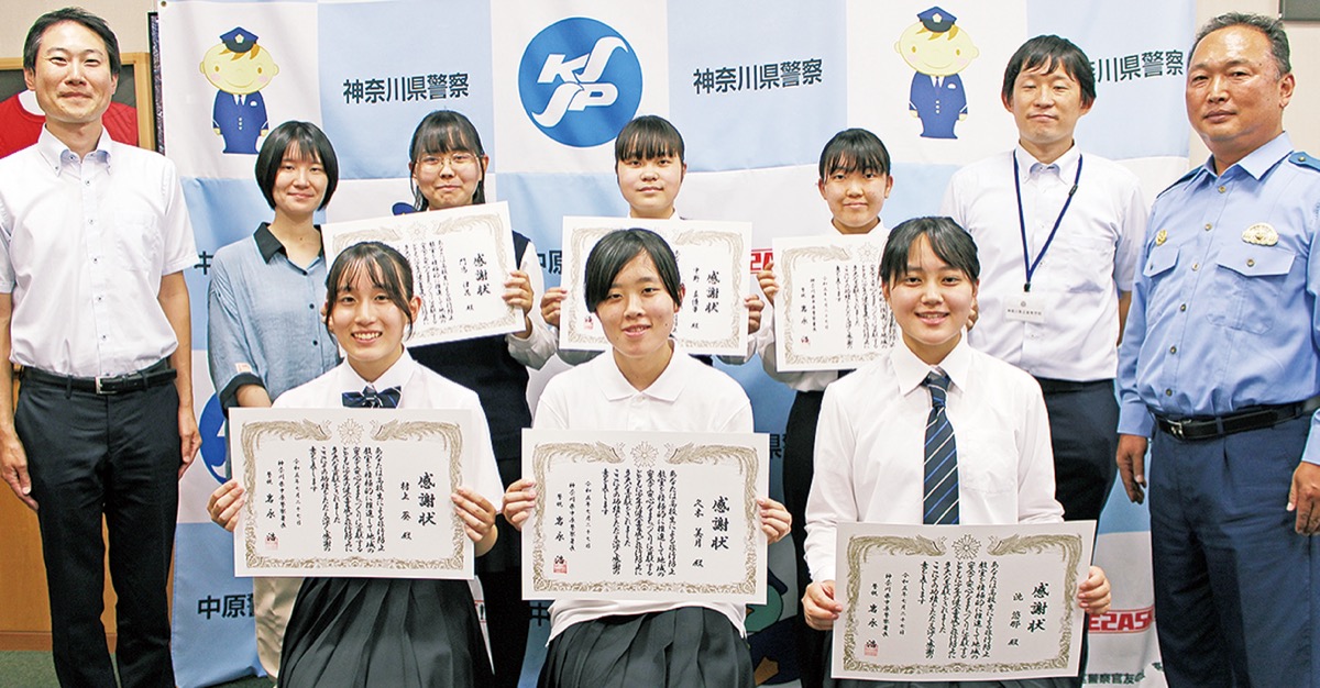 功労者として感謝状を受け取ったのは2年・部長の久木美月さん、1年の村上葵さん、沈悠那さん、小嶋咲和さん、中野真優華さん、門馬律花さんの部員6人。小学生を前に、万引きがどれだけ悪いことで、周囲を悲しませてしまうのかを臨場感あふれる演技で披露した。部長の久木さんは「自分たちの劇が未来のある子どもたちの犯罪を未然に防ぐことにつながれば。活動が認められ、感謝状をいただけてうれしい」と話し、迫真の演技を心掛けたことを伝えた。同署が団体としてでなく、個人名で全員に感謝状を贈るのは異例。岩永浩署長は「児童にとって身近な高校生が演じることで社会のルールをわかりやすく伝えられたと思う。こうした活動を後輩たちにもつなげてほしい」と称賛した。