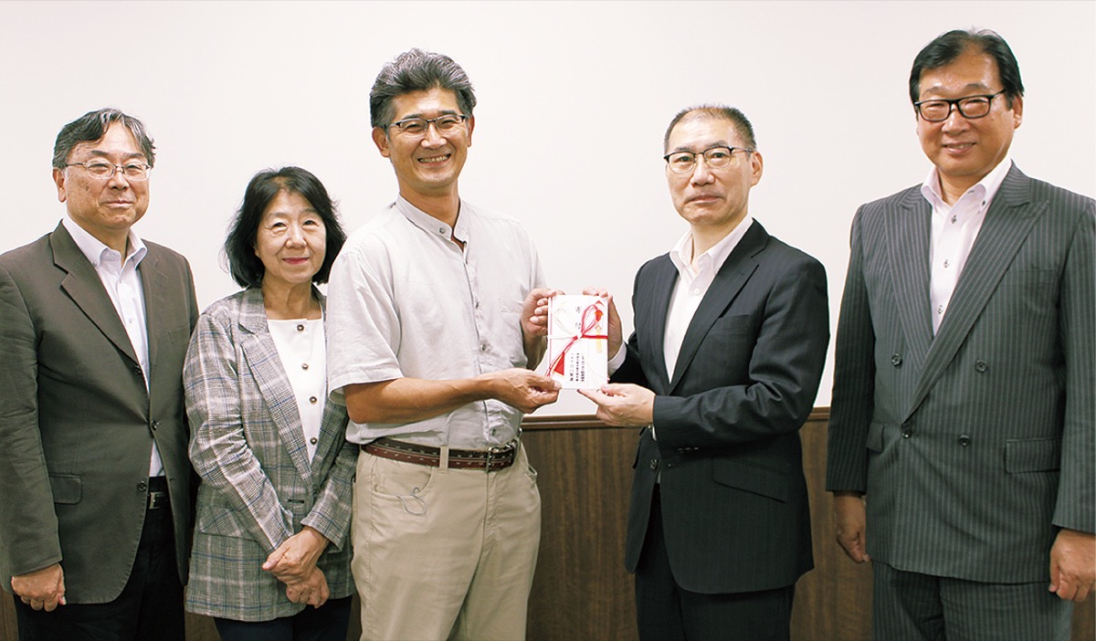 「未来ある子どもたちのために役立ててほしい」と毎年続けている奉仕活動の一環。この日は出口支部長と、副支部長の米田恵子さん、小林達夫さん、清水弘之さんの3人が新日本学園(木月伊勢町)、川崎愛児園(宮前区)、すまいる(川崎区)の3園を訪ね、各園に10万円を届けた。新日本学園の三浦崇志園長は「今年の夏はキャンプなどさまざまな活動が再開した。子どもたちが楽しめる企画を実施できるのも、地元団体からのこうした支援のおかげ」と感謝を述べた。