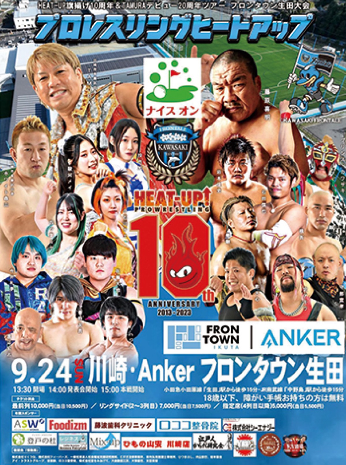 プロレス団体「ヒートアップ」は9月24日(日)、Ankerフロンタウン生田(多摩区)で初めて大会を行う。午後3時開始。詳細は同団体ウェブサイトから。(問)【電話】044・712・4312